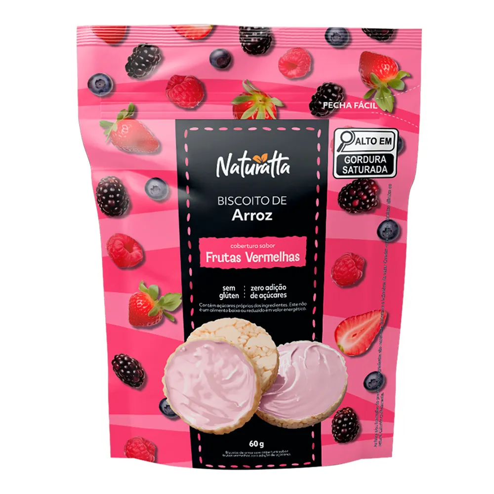 Biscoito de Arroz Naturatta com Cobertura de Frutas Vermelhas 60g Sem Glúten