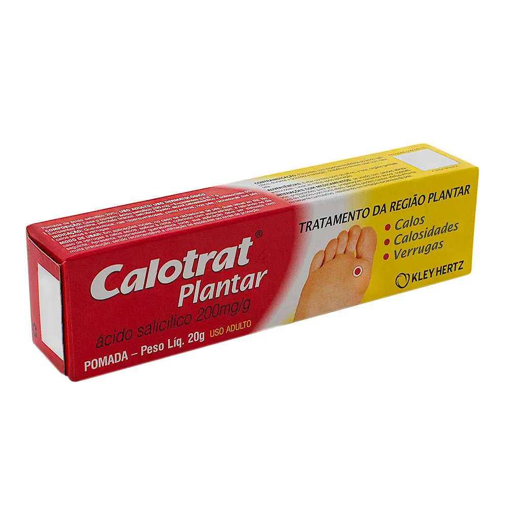 "CALOTRAT PLANTAR POMADA COM 20G É UM MEDICAMENTO. SEU USO PODE TRAZER RISCOS. PROCURE O MÉDICO E O FARMACÊUTICO. LEIA A BULA. SE PERSISTIREM OS SINTOMAS, O MÉDICO DEVERÁ SER CONSULTADO."