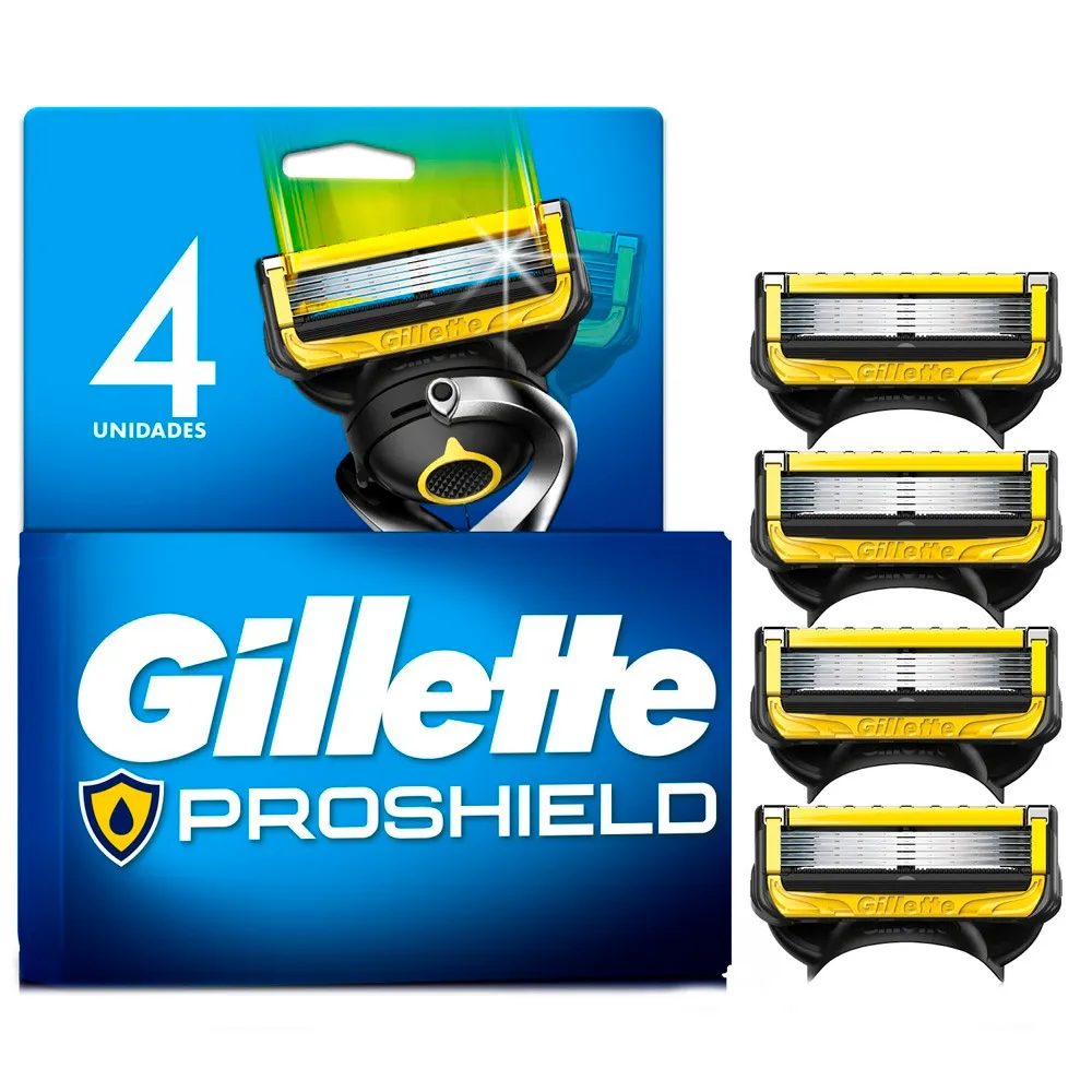 As Cargas para o aparelho de barbear recarregável Gillette Proshield possuem 5 lâminas e dupla lubrificação para precisão e conforto no barbear. Foi desenhada para proporcionar um barbear mais rente, suave e duradouro*(*vs. Mach3), graças à sua tecnologia Flexball que se adapta aos contornos do rosto para atingir cada pelo; e microtensores que esticam a pele. Para locais de difícil acesso ao barbear e modelar os pelos faciais, o Proshield5 possui uma lâmina de precisão para ajudá-lo a obter um barbear ideal. Todos os refis para barbear Proshield podem ser usados com quaisquer cabo Fusion5, Proshield e SkinGuard.