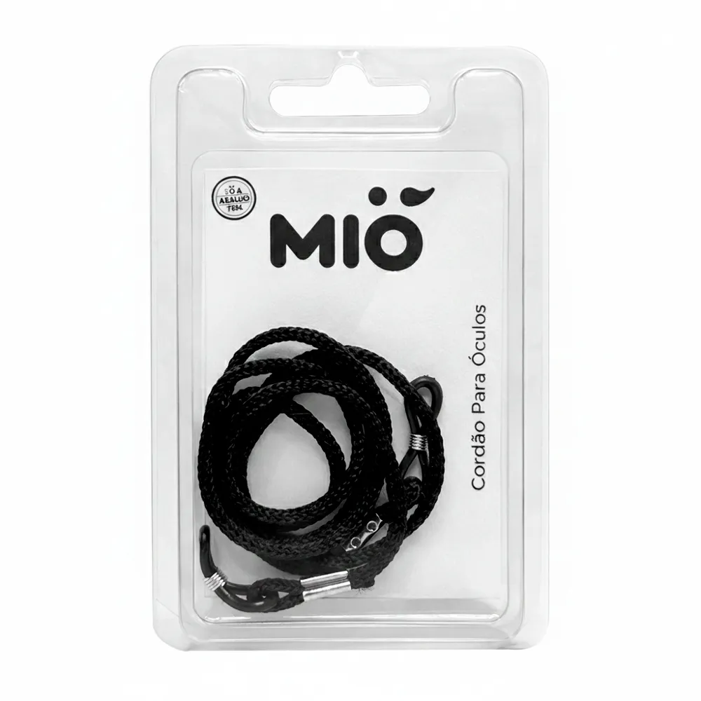 Desenvolvido com material trançado resistente e leve, ele oferece conforto durante o uso prolongado, não incomodando no pescoço. Seus conectores de silicone com ajuste metálico (molas prateadas) garantem uma fixação firme nas hastes, prevenindo quedas acidentais, riscos nas lentes ou a perda dos seus óculos durante as atividades diárias. Mantenha seus óculos sempre por perto e seguros com a qualidade MIÓ.