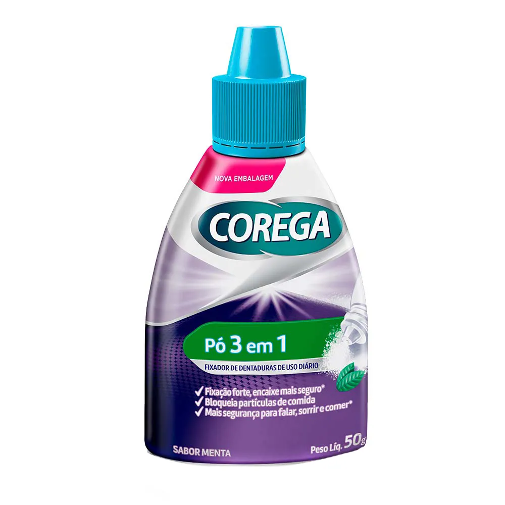 O fixador de próteses dentárias Corega Pó 3 em 1 foi especialmente desenvolvido para proporcionar uma forte fixação e encaixe mais seguro, proporcionar maior confiança para falar, sorrir e comer e bloquear as partículas de comida. Portanto, ao adquirir esse produto, você pode ter a confiança de estar utilizando um fixador que vai proporcionar um conforto durante o dia todo. Sua formulação em pó permite que você ajuste a quantidade de produto necessária para suas necessidades individuais e ainda evitar desperdícios. Modo de Uso: Limpe completamente a sua prótese; aplique igualmente uma pequena quantidade de pó nas superfícies que entram em contato com as gengivas ou céu da boca; retire completamente o excesso de pó e, por fim, pressione a prótese no local, segure firmemente e faça pressão por alguns segundos. Para outros cuidados com a sua prótese, confira outros produtos da marca, como Corega Tabs e Ultra Corega.