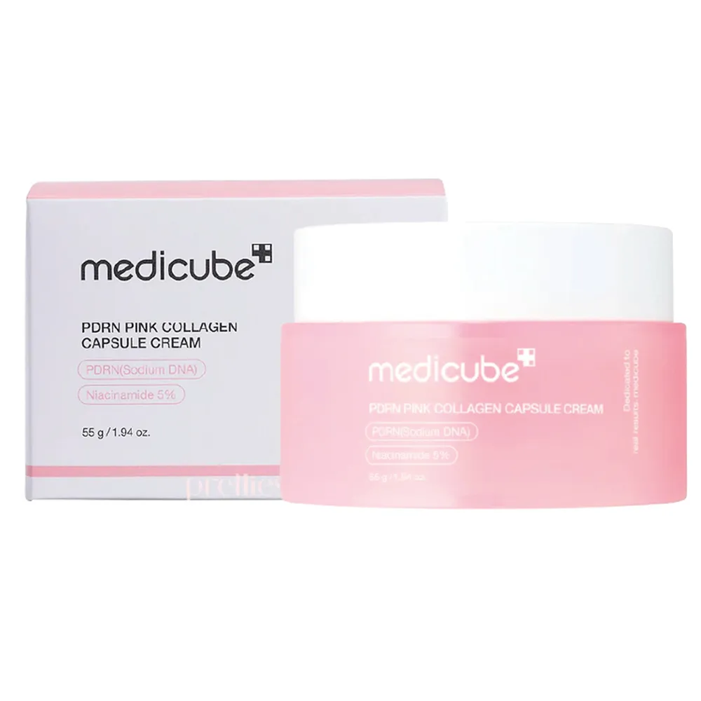 Medicube PDRN Pink Collagen Capsule Cream é um creme facial desenvolvido para promover hidratação, revitalização e melhora da firmeza da pele. Sua fórmula combina cápsulas com colágeno e PDRN, ativos reconhecidos por auxiliar na regeneração e elasticidade cutânea, proporcionando aparência mais saudável, uniforme e luminosa.