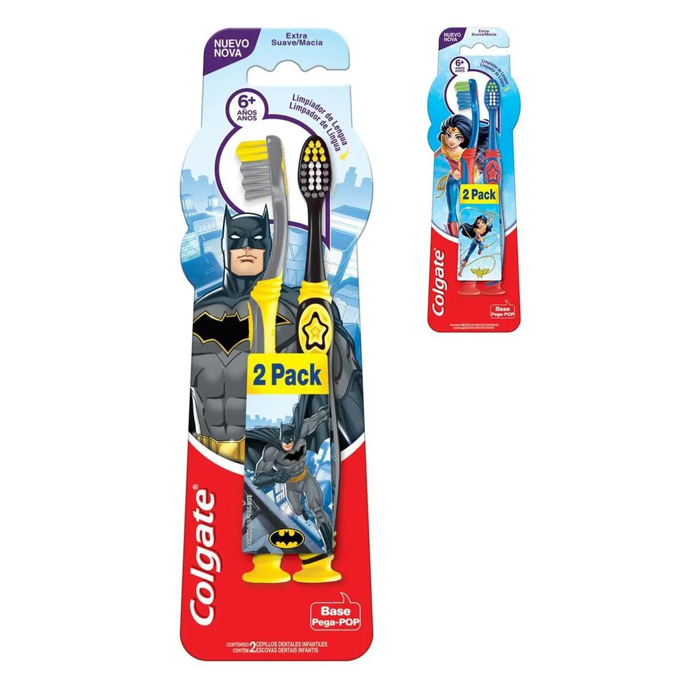 ESCOVA DENTE INFANTIL SMILES 6+ PERSONAGENS CORES SOTIDAS COM 2 UNIDADES