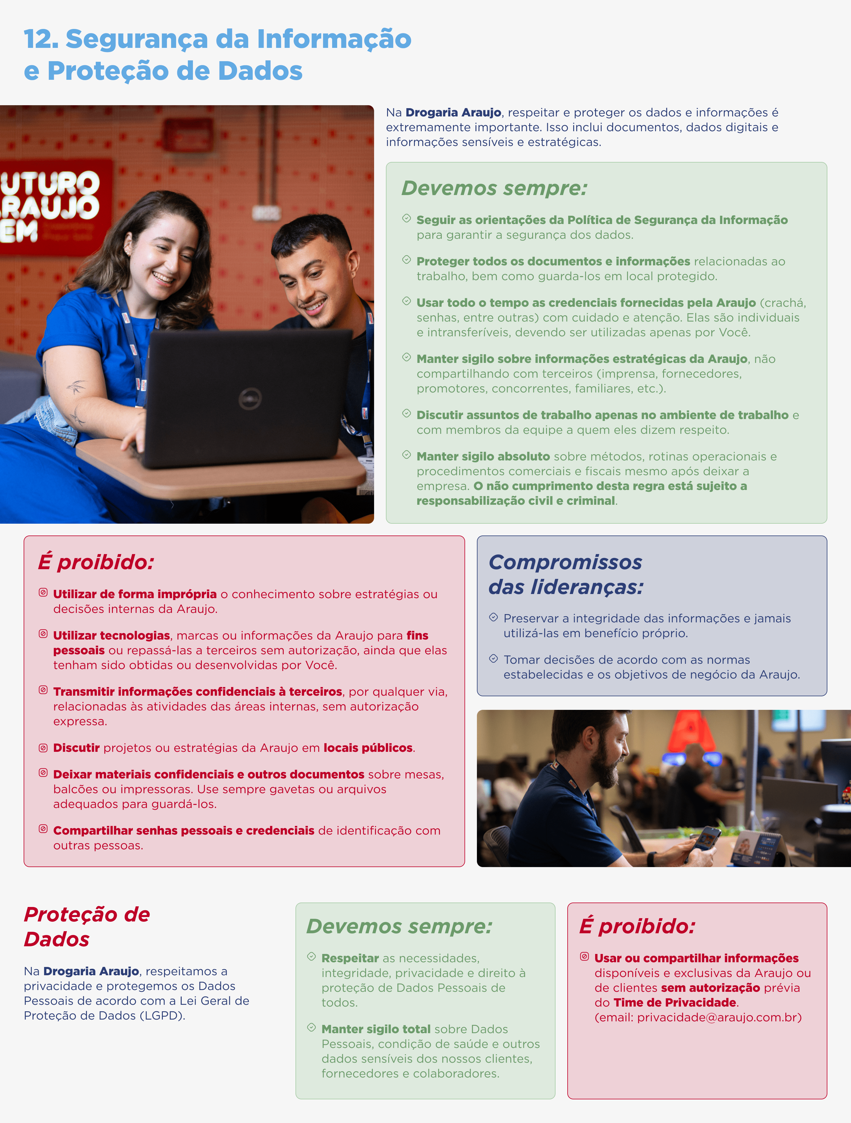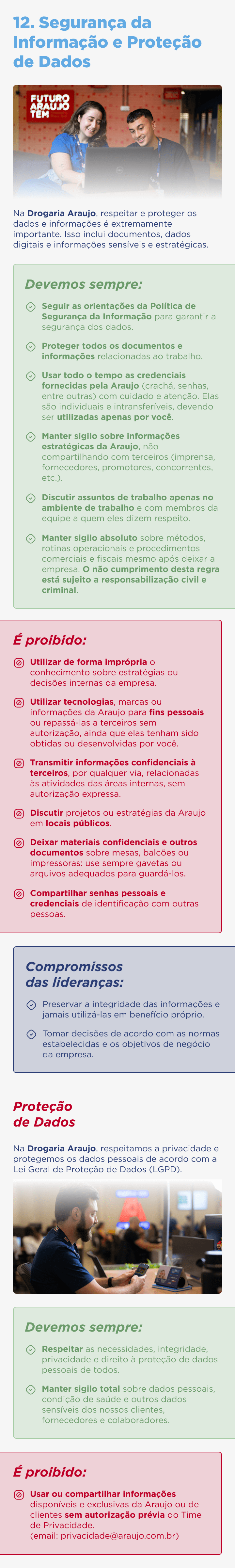 Se houver violação das leis, a Araujo se compromete a informar as autoridades e cooperar com as investigações.
