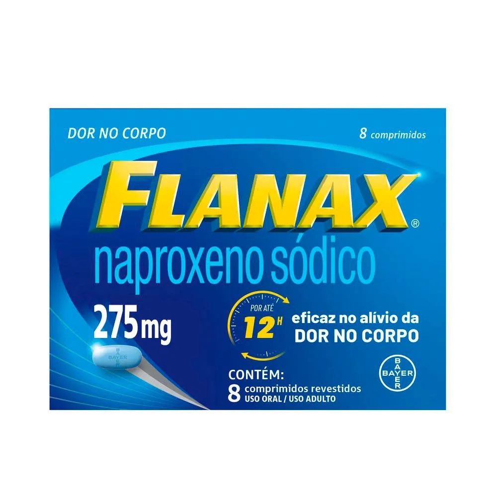 FLANAX (naproxeno sódico) é da Bayer e possui ação analgésica (alivia a dor) e antitérmica (reduz a febre).1