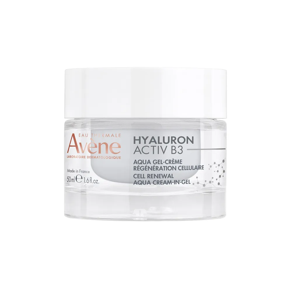 Hyaluron Activ B3 Aqua Gel-Creme Renovador Celular Anti-Idade AvèneEau Thermale Avène traz uma inovação em anti-idade com o Aqua Gel-Creme Renovador Celular Hyaluron Activ B3, altamente concentrado em Niacinamida e Ácido Hialurônico em duplo peso molecular.O Aqua Gel-Creme tem textura refrescante e seus ativos atuam diretamente na causa do envelhecimento da pele, estimula as células e prolonga sua longevidade, a pele se recupera de forma duradoura.Graças à sua fórmula exclusiva o resultado é um efeito firmador imediato. Após 15 dias, a pele fica mais preenchida, mais firme e regenerada.O produto é vegano e tem 91% de ingredientes de origem natural, foi testado em peles sensíveis, é sem perfume e adequado para todas as áreas do rosto.Benefícios:Desde a primeira aplicação:• Efeito firmador• Pele hidratada, acalmada e revitalizada;Em 15 dias:• Pele mais firme e regenerada;• Reduz rugas e linhas de expressão;• Recupera a elasticidade e viço da pele.O creme atua diretamente na causa do envelhecimento, estimula as células e prolonga sua longevidade, com uma textura refrescante aqua gel-creme.Ativos:Niacinamida, Adenosina, Ácido Hialurônico e Água Termal AvèneComposição:AVENE AQUA (água). GLYCERIN (glicerol). NIACINAMIDE (nicotinamida). SQUALANE (esqualano). DIGLYCERIN (diglicerina). PERSEA GRATÍSSIMA OIL (óleo de abacate).HYDROXYETHYL ACRYLATE/SODIUM ACRYLOYLDIMETHYL TAURATE COPOLYMER (copolímero de acriloildimetiltaurato de sódio e acrilato de hidroxietila). POLYGLYCERYL-10 MYRISTATE (miristato de poliglicerila-10). SODIUM HYALURONATE (hialuronato de sódio). ADENOSINE (adenosina). 1,2-HEXANEDIOL (1,2-hexanodiol). BEHENYL ALCOHOL (álcool beenílico). CAPRYLIC/CAPRIC TRIGLYCERIDE (triglicerídeo caprílico/cáprico). CAPRYLYL GLYCOL (caprililglicol). CARAMEL (marrom caramelo). CITRIC ACID (ácido cítrico). FRAGRANCE (perfume). POLYSORBATE 60 (polissorbato 60). SODIUM CITRATE (citrato de sódio). SORBITAN ISOSTEARATE (isoestearato de sorbitana). TOCOPHERYL GLUCOSIDE (tocoferil glicosídeo). AQUA (água). XANTHAN GUM (goma xantana).