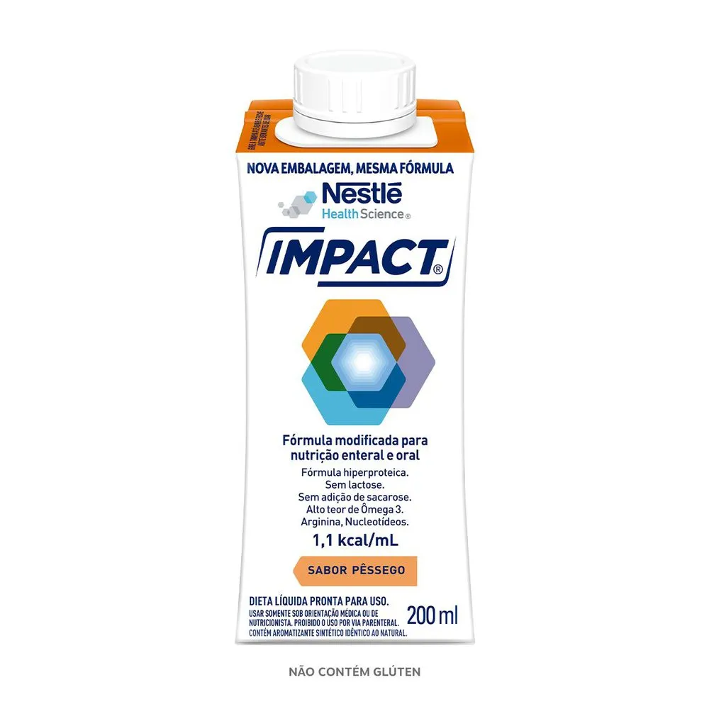 Fórmula modificada para nutrição enteral e oral com arginina e nucleotídeos e com alto teor de ácidos graxos ω-3, normocalórica¹ e hiperproteica¹. Sem lactose e sem adição de sacarose. Sabores torta de limão, pêssego, banana e baunilha – sleeve 200ml.