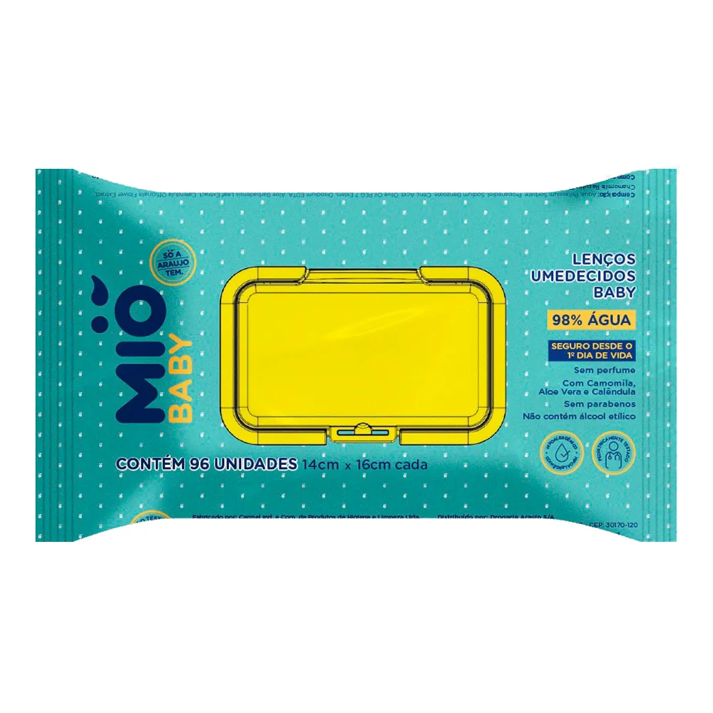 Lenço Umedecido Mio Baby 96 Unidades - 98% Água, Com Camomila, Aloe Vera e Calêndula - Sem Álcool