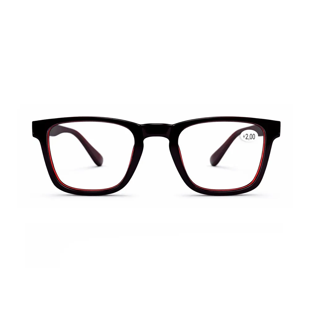 Óculos Lupa para Leitura MIÓ Grau +2,00 – Armação Bicolor Preto e Vermelho