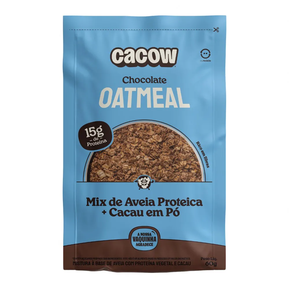 Mix de Aveia Proteica Cacow Chocolate 60g – 15g de Proteína com Cacau em Pó