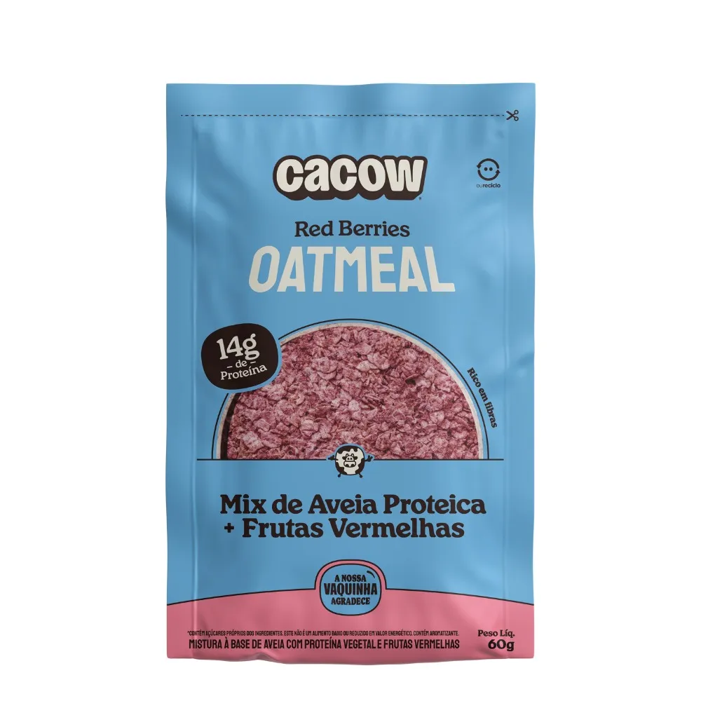 O sabor Red Berries traz o equilíbrio ideal entre o adocicado e o levemente cítrico das frutas vermelhas, proporcionando uma experiência gastronômica vibrante logo pela manhã. Além de delicioso, o Cacow é rico em fibras, auxiliando no bom funcionamento do sistema digestivo. Sua embalagem de 60g é prática e ideal para levar na bolsa ou deixar no escritório, garantindo que você nunca pule uma refeição importante por falta de tempo.