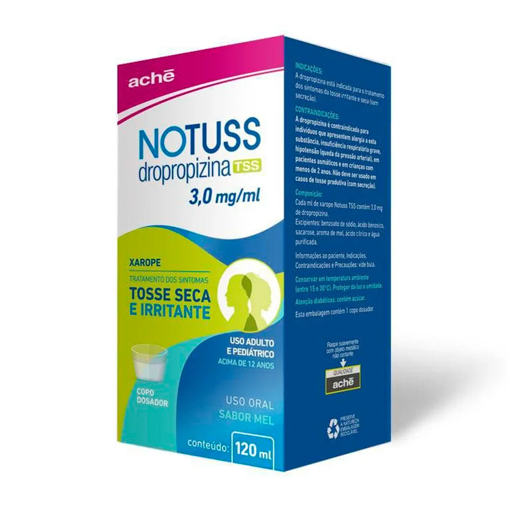 NOTUSS DROPROPIZINA 3MG/ML XAROPE SABOR MEL 120ML É UM MEDICAMENTO. DURANTE SEU USO, NÃO DIRIJA VEÍCULOS OU OPERE MÁQUINAS, POIS SUA AGILIDADE E ATENÇÃO PODEM ESTAR PREJUDICADAS. SE PERSISTIREM OS SINTOMAS, O MÉDICO DEVERÁ SER CONSULTADO.
