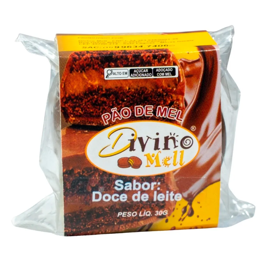 R$ 5,59Pão de Mel Divino Mell Sabor Doce de Leite 30g - Cobertura de Chocolate, Adoçado com Mel