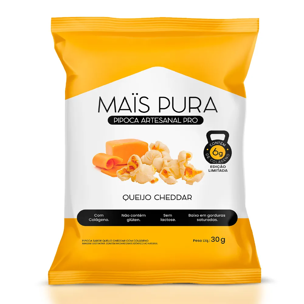 Pipoca Artesanal Maïs Pura PRO Queijo Cheddar 30g – Com 6g de Colágeno e Sem Lactose
