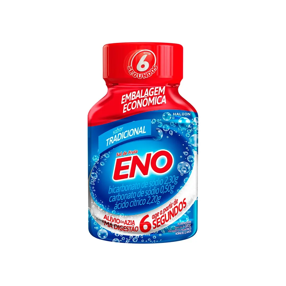 Por que Eno tradicional?ENO alivia em 6 segundos a azia ou má digestão.SABOR:Sabor ENO Tradicional.Modo de uso:Para consumir ENO Tradicional deve-se dissolver 5g (conteúdo de 1 colher de chá) em um copo pequeno de água (200 ml) e beba. Recomenda-se consumir o sal de fruta ENO Tradicional assim que ele tiver se dissolvido completamente na água.Conheça toda a família Eno:Sal de Fruta Eno está disponível em 2 tamanhos; frasco com 20 doses, e um sachet com 2 doses. Conheça também os outros sabores de ENO, Tutti Frutti, Tradicional, Laranja, Abacaxi, Guaraná e Limão.
