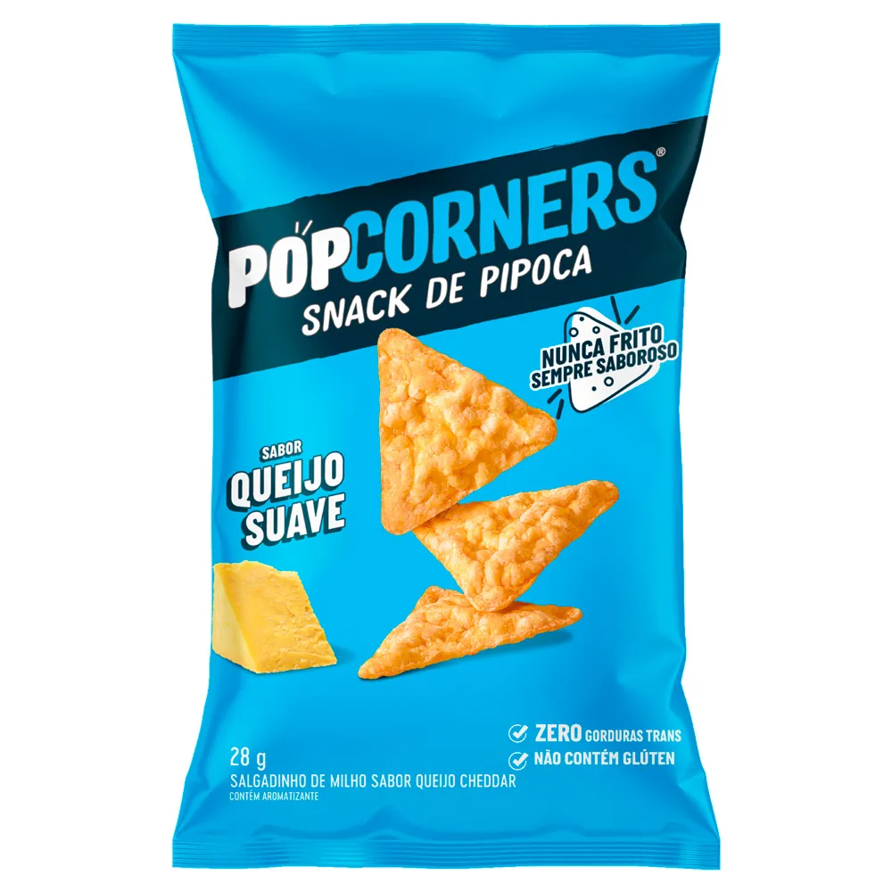 O PopCorners Sabor Queijo Suave redefine a experiência de comer pipoca. Com uma proposta inovadora, este snack de milho combina o sabor irresistível da pipoca com a crocância de um salgadinho triangular, mas com um diferencial importante: ele é nunca frito.